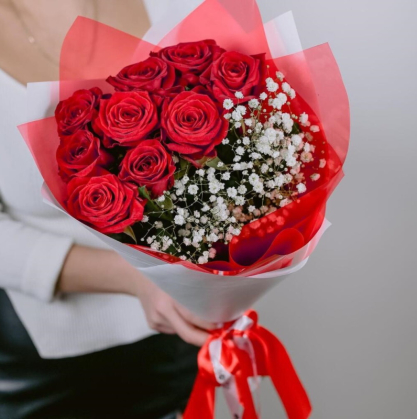 Букет из красных роз и гипсофилы | Купить в Эдмонтоне