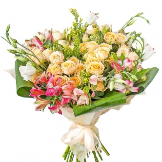 Наши флористы создают уникальные композиции, гармонично сочетая альстромерию с другими цветами: